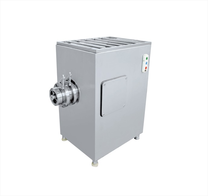 本机型采用优质不锈钢材质,光亮平整,设计合理,易于清洗,符合HACCP卫生标准。该绞肉机绞龙轴导程大、入料口大、进料通畅、生产效率高,生产能力达1吨/小时。可将未解冻的肉块或鲜肉直接进行绞切,制成各种规格的肉粒。